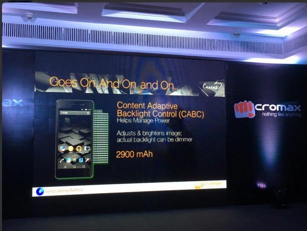 यो फोनमा २९०० एमएएचको ब्याट्री राखिएको छ भने फोनमा कन्टेन्ट एडोप्टेबल ब्याकलाइट कन्ट्रोल फीचर उपलब्ध रहेको छ । यसले पावर म्यानेजमेन्टको काम गर्दछ । यसले स्क्रीनमा कुनै सामाग्री हेरिरहेको बेलामा अटोमेटिक उज्यालोपनालाई नियन्त्रण गर्दछ र ब्याट्री पावरको बचत हुन्छ ।Micromax Canvas5_4