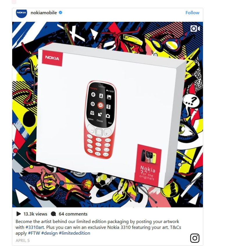 कम्पनीले आफ्नो इन्टाग्राम (Instagram) एकाउन्टमा नोकिया ३३१० को डिजाइनर एडिशनको तस्विर सार्वजनिक गर्दै ग्राहकहरुलाई मनपर्ने डिजाइन गर्न आव्हान गरेको छ ।
