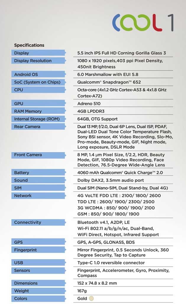 कुलप्याड कुल वानमा ६४ बीको अक्टा कोर क्वालकम स्न्यापड्रागन ६५२ चीपसेट राखिएको छ भने यसमा ग्राफिक्सका लागि एड्रेनो ५१० जीपीयू छ ।