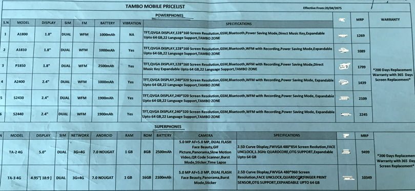 टम्बो मोबाइलले सन् २०१८ को अप्रिलदेखि भारतमा विभिन्न फोनहरु सार्वजनिक गरेको थियो, यी मोबाइल फोनहरु अब नेपाली बजारमा पनि उपलब्ध भएको छ ।