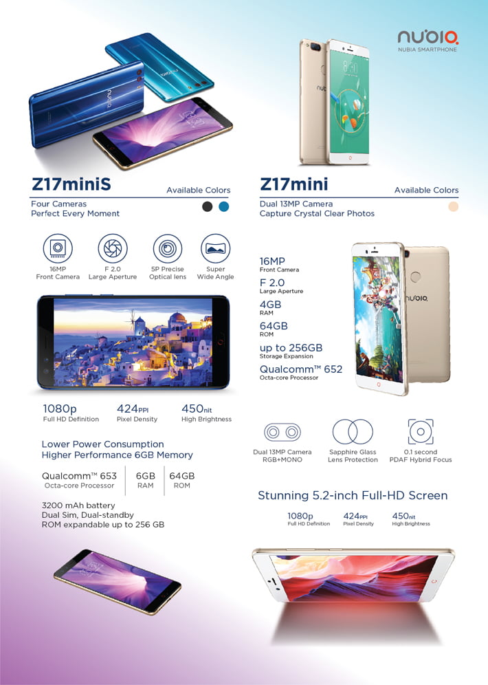 नूवियाको अर्को स्मार्टफोन जेड सेभेन्टिन मिनीमा ४ जीबी र्याम र ६४ जीबी स्टोरेज राखिएको छ भने १३ मेगापिक्सेलको ड्यूल रियर क्यामरा तथा १६ मेगापिक्सेलको फ्रन्ट क्यामरा राखिएको छ । फोनको बजार मूल्य २९,९९९ रुपैयाँ तोकिएको छ ।