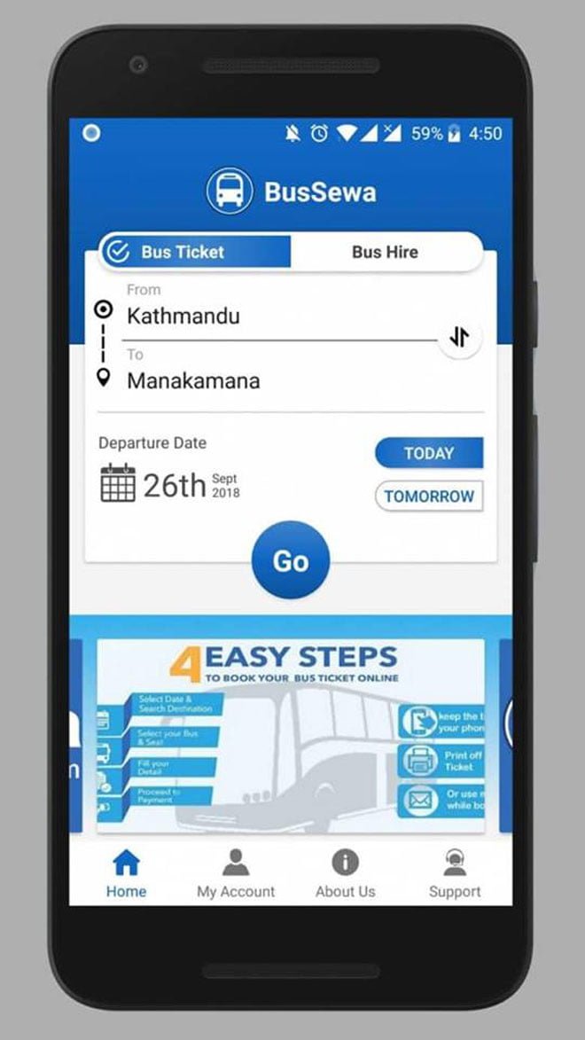 बससेवाबाट नेपालका अधिकांश रूटहरूका टिकट काट्न सकिन्छ । यात्रुहरूले बससेवा डटकम, तथा बससेवाको मोबाईल एप्लिकेशनबाट टिकट बुकिङ गर्न सक्नेछन् ।