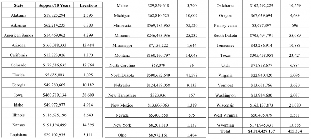 जसअन्तरगत नर्थ र साउथ डकोटा राज्यले सबैभन्दा धेरै रकम हात पार्ने भएको छ । यी राज्यहरुले १.३ बिलियन रकम करिब ९६ हजार घर र व्यवसायहरुलाई सेवा गरे बापत पाउनेछन् ।