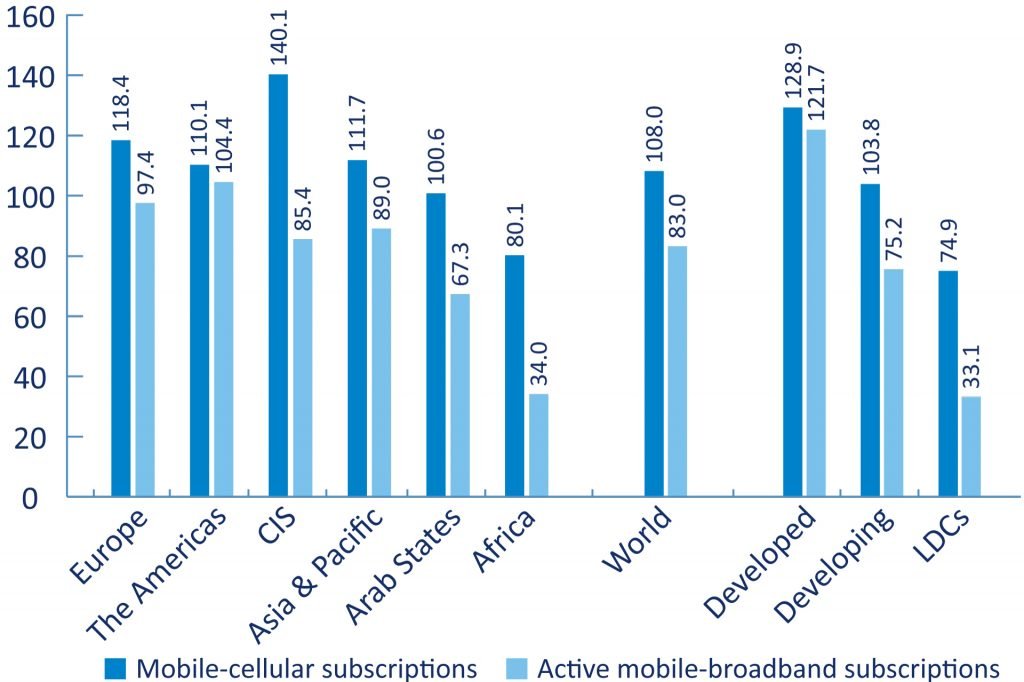 अमेरिकी मुलुकहरु, युरोप र एशिया प्यासिफिक क्षेत्रमा ९५ प्रतिशत भन्दा बढि जनसंख्या ३जी वा त्यो भन्दा माथिल्लो मोबाइल ब्रोडब्याण्ड नेटवर्कमा आबद्ध रहेका छन् । यस्तो संख्या अरब मुलुकहरुमा ९१ प्रतिशत छ भने कमनवेल्थ स्वतन्त्र राज्यहरुमा ८८ प्रतिशत र अफ्रिकी मुलुकहरुमा ७९ प्रतिशत रहेको छ ।