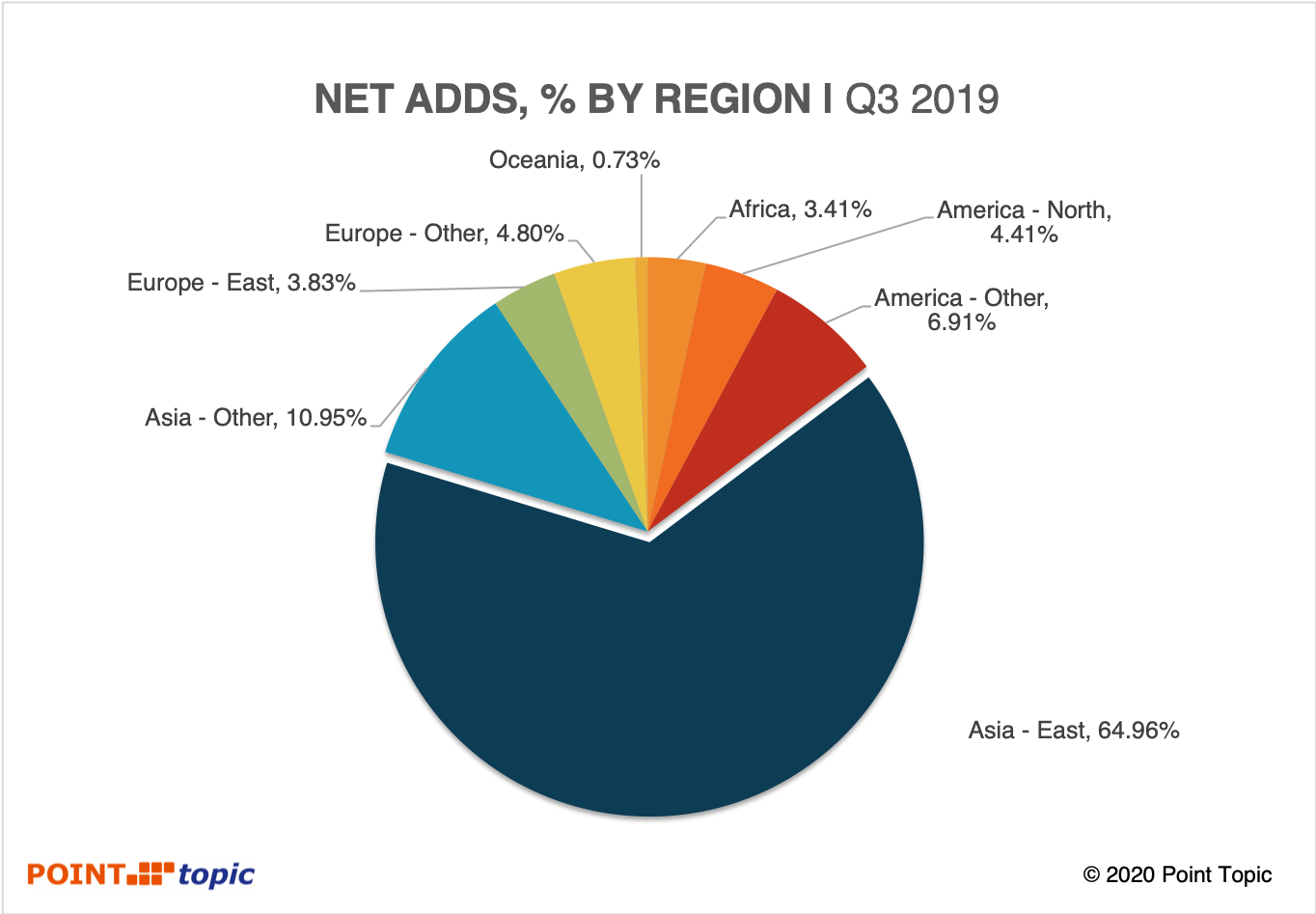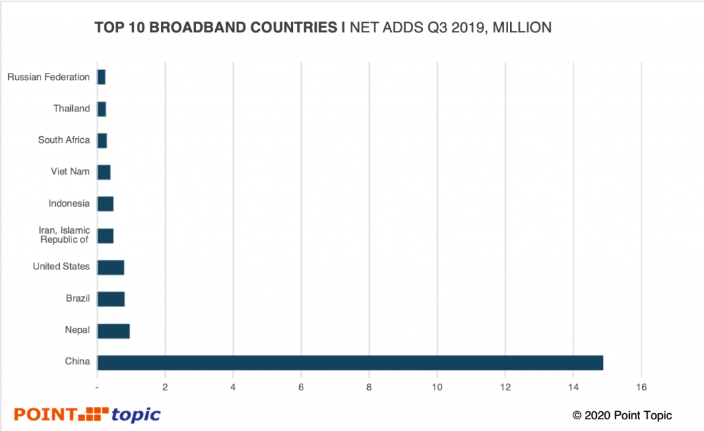 त्यसैगरि विश्वभर फिक्स्ड ब्रोडब्याण्ड कनेक्सन सेवाग्राही १ अर्ब ११ करोड २० लाख सन् २०१९ को तेस्रो चौमासिकमा पुगेको छ, जून अघिल्लो चौमासिकको तुलनामा २.१७ प्रतिशतले वृद्धि भएको हो । सो अवधिमा २ करोड ३६ लाख सेवाग्राहीहरु फिक्स्ड ब्रोडब्याण्ड कनेक्सनमा जोडिएका प्वाइन्ट टपिकको रिपोर्टमा उल्लेख छ ।