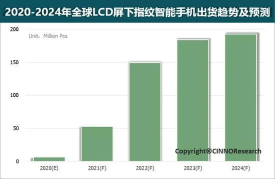 सन् २०२४ सम्ममा एलसिडीमा अण्डर स्क्रीन फिंगरप्रिन्ट रिकोग्निसन सपोर्टको वृििद्ध हुँदै करिब १९ करोड यूनिट पुग्ने प्रक्षेपण गरिएको छ।