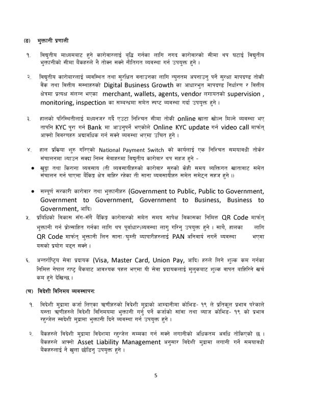 विद्युतीय कारोबारलाई व्यवस्थित तथा सुरक्षित वनाउनका लागि न्युनतम अपनाउनु पर्ने सुरक्षा मापदण्ड तोकी वैंक तथा वित्तीय संस्थाहरुको डिजिटल बिजनेश ग्रोथका आधारभुत मापदण्ड निर्धारण र वित्तीय क्षेत्रमा प्रत्यक्ष संलग्न भएका मर्चेन्ट, वालेट, एजेन्ट्स, भेन्डर लगायतको सुपरिवेक्षण, अनुगमन र निरीक्षण सम्बन्धमा समेत स्पष्ट व्यवस्था गर्न संघले आग्रह गरेको छ ।