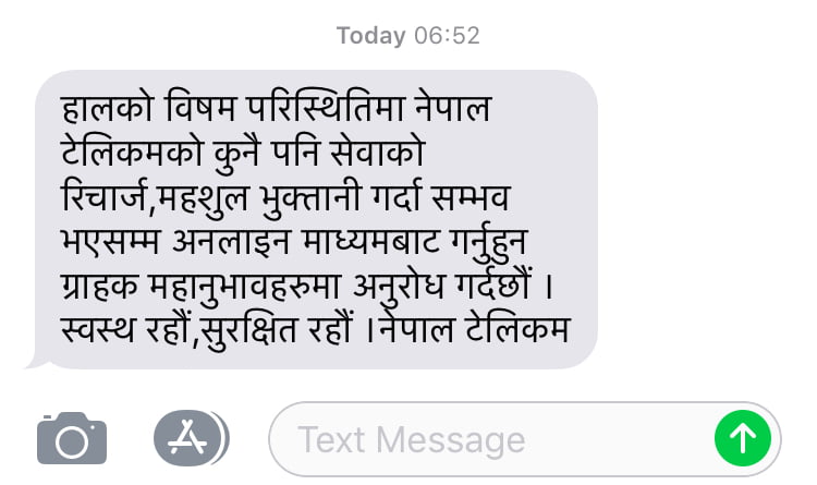 कम्पनीले ग्राहकहरुलाई अहिलेको विषम अवस्थामा नेपाल टेलिकमको कुनैपनि सेवाको रिचार्ज, महशुल भुक्तानी गर्दा सम्भव भएसम्म अनलाइन माध्यमबाट गर्न अनुरोध गरेको हो ।