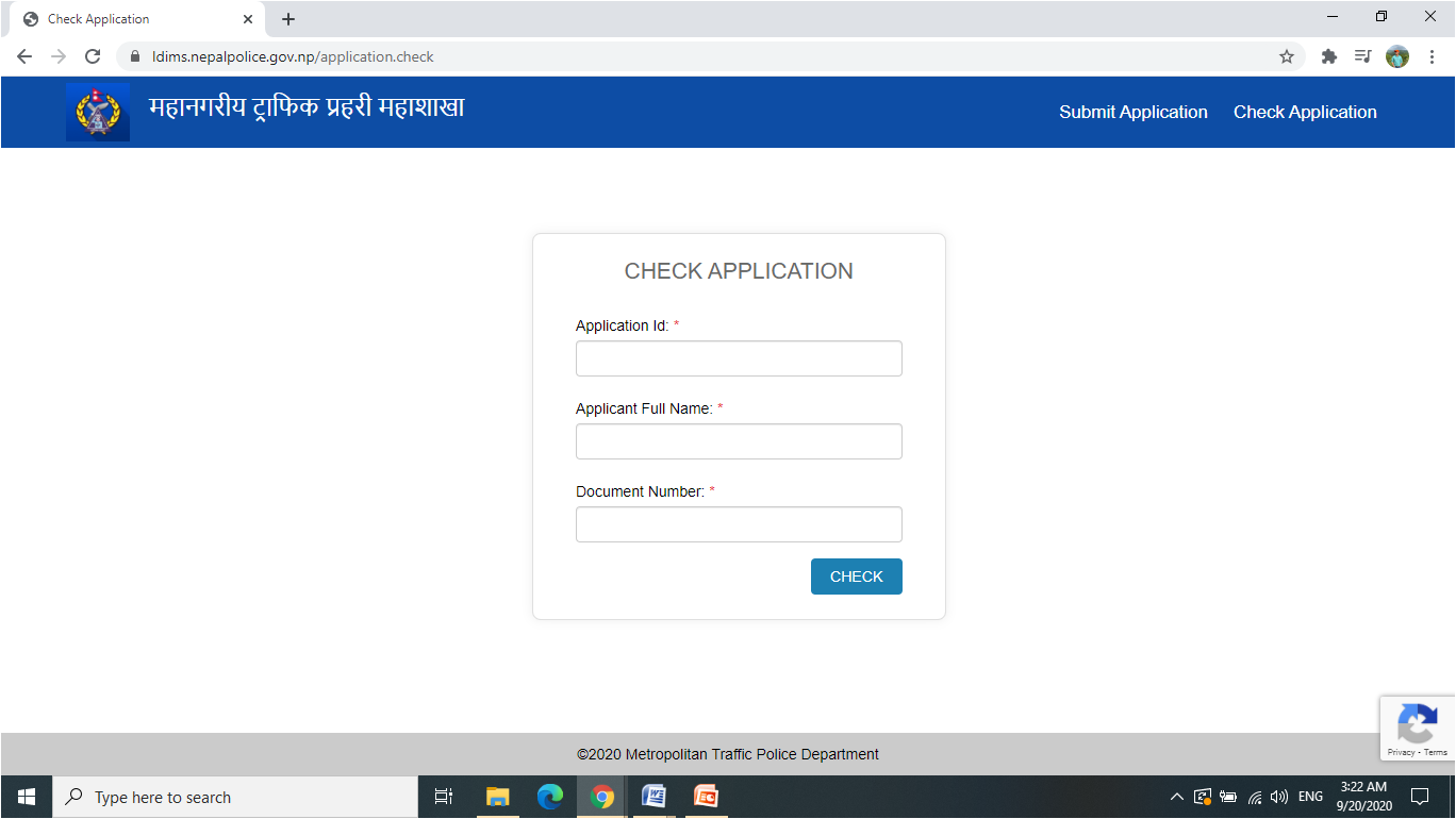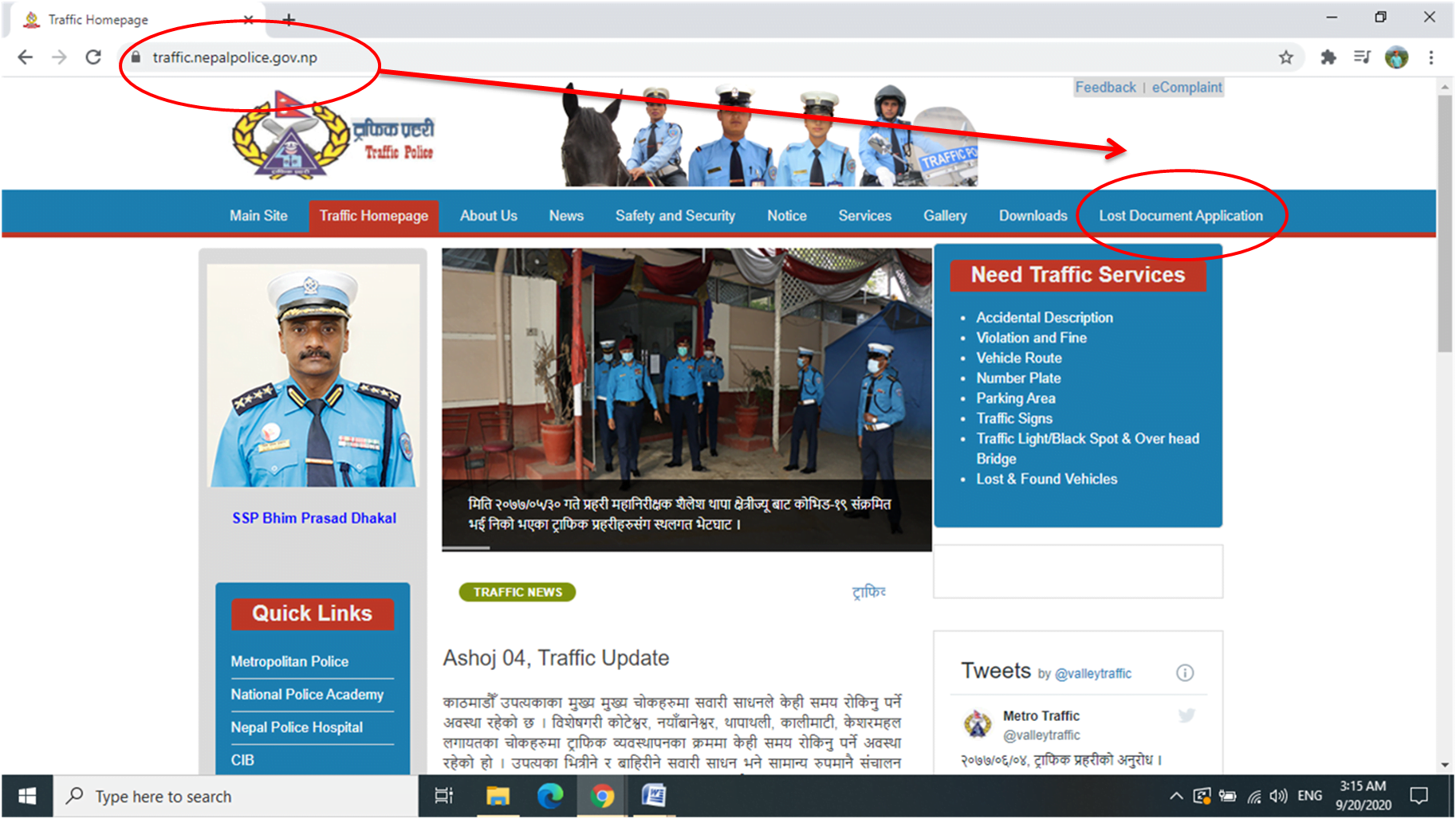 सिफारिस रिपोर्ट आवश्यक पर्ने व्यक्तिले अब ट्राफिक प्रहरीको वेबसाइट traffic.nepalpolice.gov.np मा गएर फर्म भर्नुपर्ने हुन्छ । वेबसाइट खोलेपछि दायाँतर्फ लस्ट डकुमेन्टस एप्लिकेसनमा(Lost Document Application) क्लिक गर्नुपर्ने हुन्छ । त्यसपछि माग भएबमोजिम सेवाग्राहीले आफ्नो विवरण भर्नुपर्ने हुन्छ ।