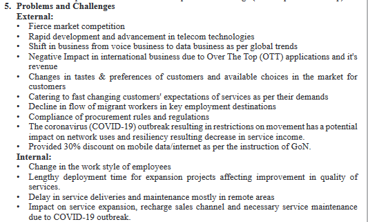 यी कारणहरुलाई कम्पनीले बाह्य समस्या र चुनौती मानेको छ भने आन्तरिक चुनौतीहरु यस प्रकार छन् ।
