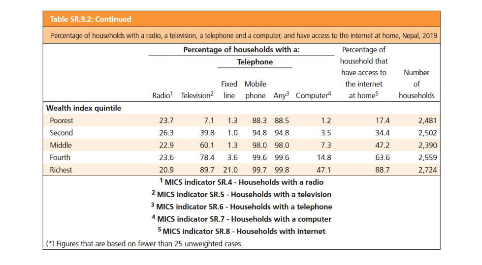 त्यसैगरि धनी व्यक्ति र गरिब व्यक्तिका घरधुरीबिच अन्य प्रविधिगत उपकरणहरुको पहुँचमा पनि भिन्नता देखिएको छ ।