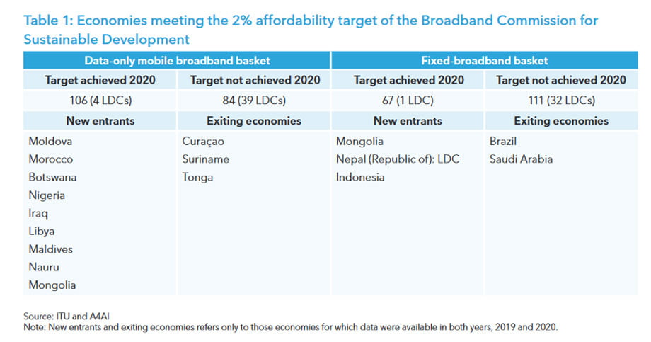 अन्तराष्ट्रिय दूरसञ्चार संघले हालै सार्वजनिक गरेको ‘द अफड्याबिलिटी अफ आईसिटी सर्भिसेज २०२०’ (The affordability of I​CT services 2020) प्रतिवेदनअनुसार नेपालले सो लक्ष्य हासिल गरेको हो ।