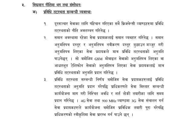 समितिमा लामो समयदेखि ९०० र २१०० मेगाहर्ज ब्याण्डको फ्रिक्वेन्सीमा प्रविधि तटस्थता गर्ने बारेमा प्रस्ताव र छलफल भएपनि कुनै निष्कर्ष हुन आउन सकेको थिएन तर हालैको बैठकले भने नयाँ निर्णय गरेको हो ।