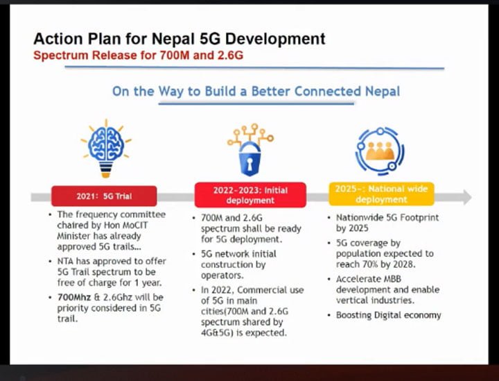 अध्यक्ष खनालले प्रस्तुत गरेको योजनाअनुसार सन् २०२१ मा नै फाइभजी सेवाको परीक्षण गरिनेछ ।