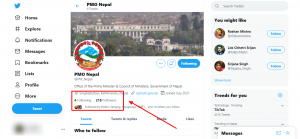 प्रधानमन्त्रीको आधिकारिक ट्विटर ह्याण्डल आर्काइभ गर्न नजान्दा फलोअर र ब्लू टिक हरायो