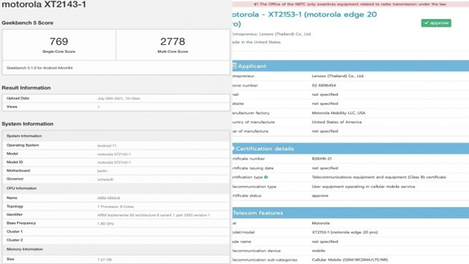 हालै मोटोरोलाको मोटो एज २० र मोटो एज २० प्रो टीना साइटमा देखा परेका छन्। कम्पनीले आगामी अगस्ट ५ लागि सार्वजनिक हुने आधिकारिक मिति तोकिसकेको छ।