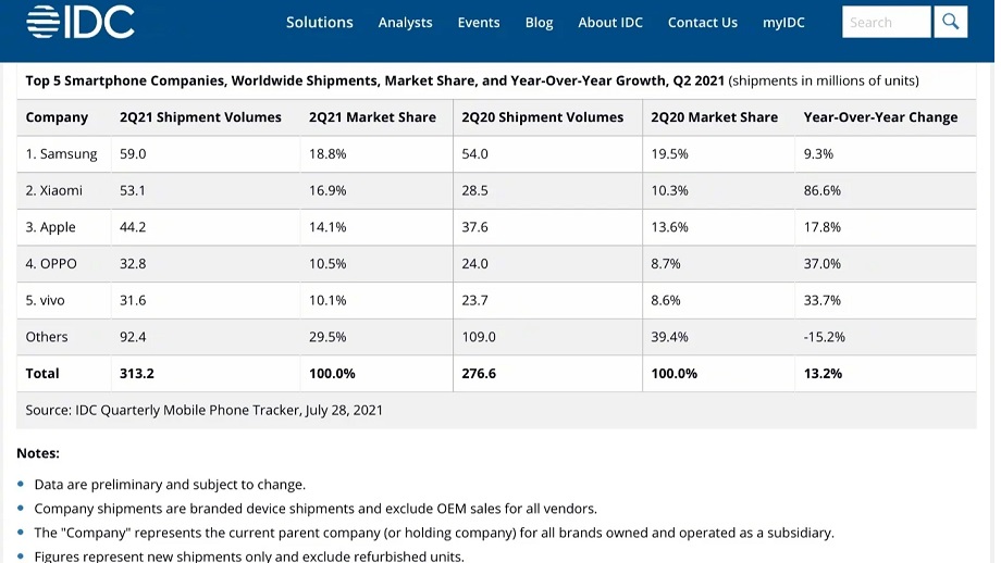 केही समयअघि चिनियाँ कम्पनी शाओमी यो जुलाइ महिनामा एप्पललाई उछिन्दै विश्वकै दोस्रो ठूलो स्मार्टफोन निर्माता बनेको क्यानालिसिस रिपोर्टमा उल्लेख गरेको थियो। अहिले भने अर्को अनुसन्धान संस्था आईडीसीले अन्य चरहरुको आधारमा अध्ययन गर्दा उस्तै नतिजा पाएको हो।