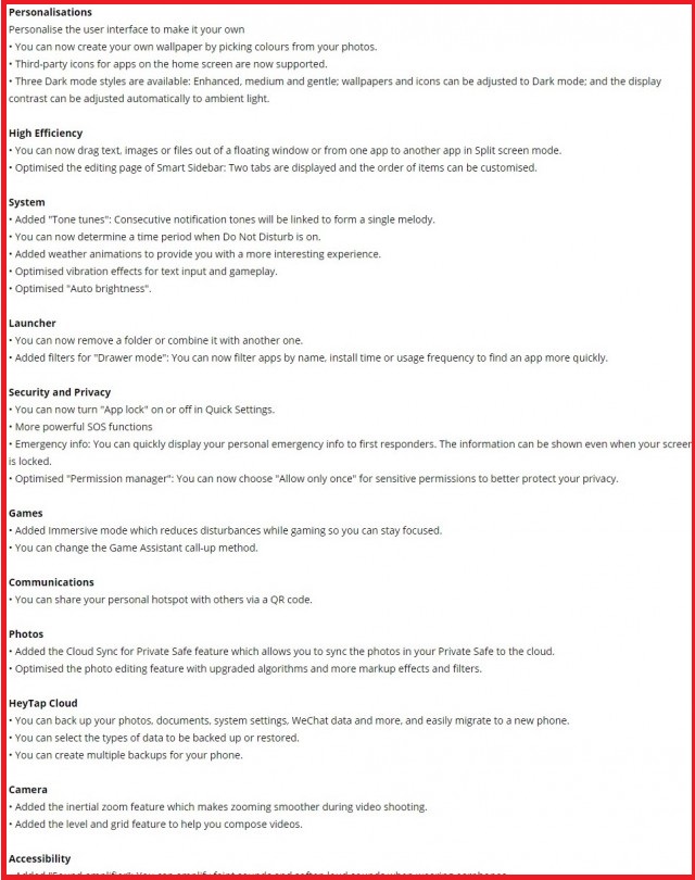 यो नयाँ अपडेटले रियलमी नार्जो ३० प्रो फाइभजीमा नयाँ रियलमी यूआई २.० तथा च्याट बबल, नोटिफिकेशन हिस्ट्री, वन टाइम पर्मिशन तथा डार्क मोड स्टाइलजस्ता एन्ड्रोइड ११ का फिचरहरु उपलदब्ध हुनेछन्।