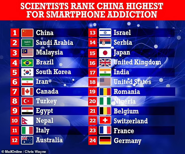 शोधकर्ताहरूले प्रत्येक देशलाई ‘समस्याग्रस्त स्मार्टफोन प्रयोग’ को आधारमा १० र ६० बीचको अंक दिए। ६० मध्ये ३६ अंक लिएर चीन शीर्ष स्थानमा छ। नेपालले भने त्यसमध्ये २९.४१ अंक पाएर १०औं स्थानमा रहेको छ।