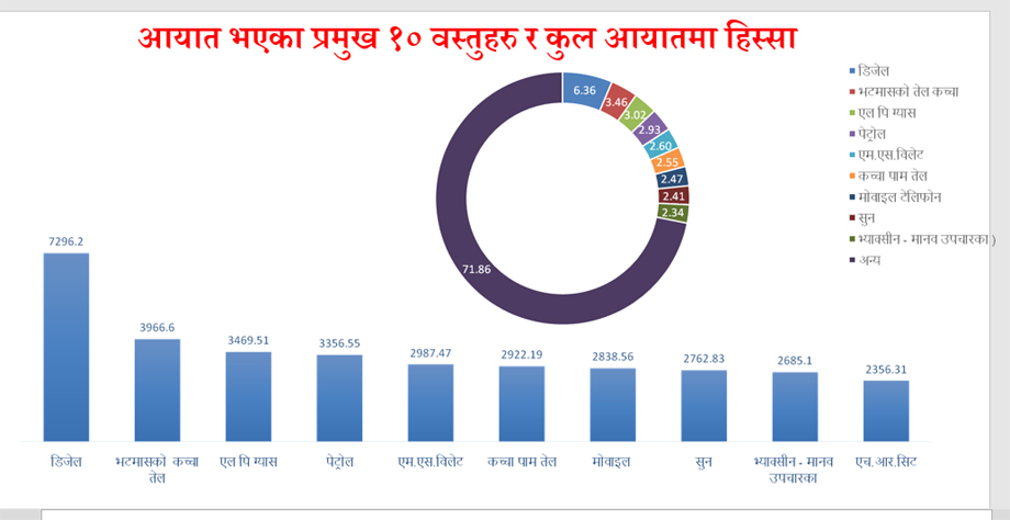 आयात सूचीमा मोबाइल फोनले प्रमुख १० वस्तुहरु मध्येको स्थान ओगटेसँगै सबैभन्दा धेरै राजस्व आम्दानी गर्ने वस्तुको सूचीमा समेत परेको छ।