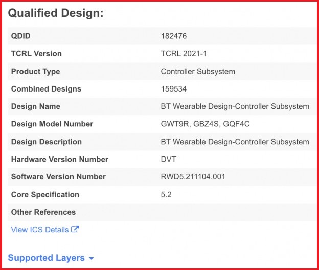 हाल ब्लूटूथ सर्टिफिकेशन पाएका तीन ओटा मोडलहरुमा जीडब्लूटी९आर, जीबीजेड४एस तथा जीक्यूएफ४सी रहेका छन् जसलाई गुगल एलएलसीका लागि ब्लूटूथ एसआईजीले ‘बीटी वेयरेबल डिजाइन-कन्ट्रोलर सबसिस्टम’ नामको सर्टिफिकेशन प्रदान गरेको जीएसएमएरिनाले जनाएको छ।