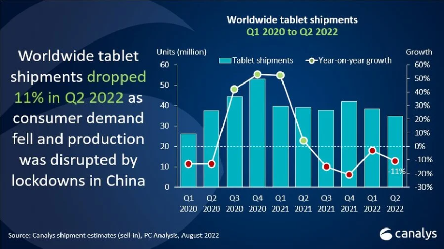 क्यानिालिसको रिपोर्ट अनुसार सन् २०२२ को दोस्रो त्रैमासमा विश्वव्यापी क्रोमबुक र ट्याबलेट बिक्री लगातार घटिरहेको छ।
