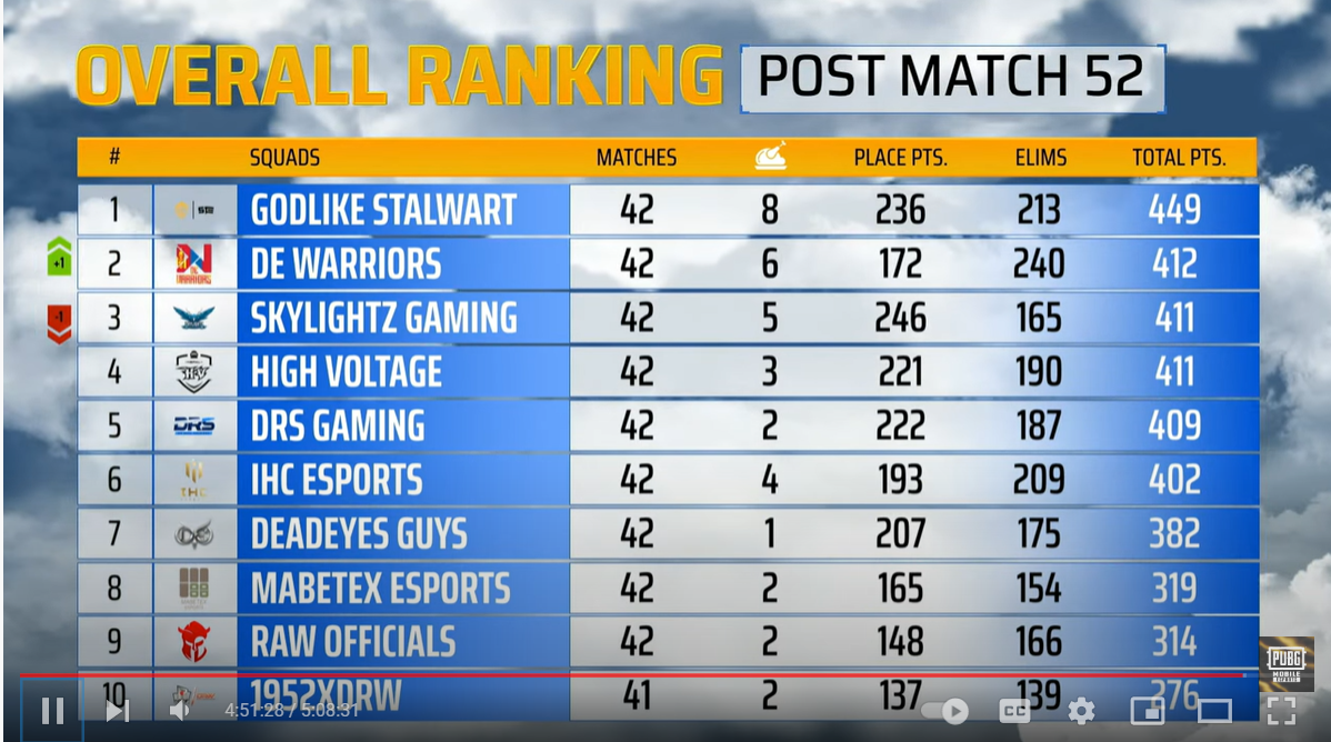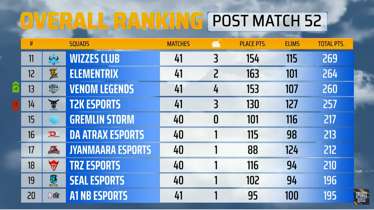 दक्षिण एशिया क्षेत्रका उत्कृष्ट पब्जी टिमहरुका लागि फाइनल प्रवेशका लागि अब अन्तिम २० खेल मात्र बाँकी छ। अघिल्लो दुई साता र यो साताको बाँकी २० खेलमा प्राप्त हुने अंकका आधारमा उत्कृष्ट १६ टिम फाइनल प्रवेश गर्नेछन्। तेस्रो साताको अंक तालिकाको शीर्ष १२ स्थानमा रहने टिमले तालिकामा अंक थप्नका लागि थप एक लिभिक म्याप खेल्न पाउनेछन्।
