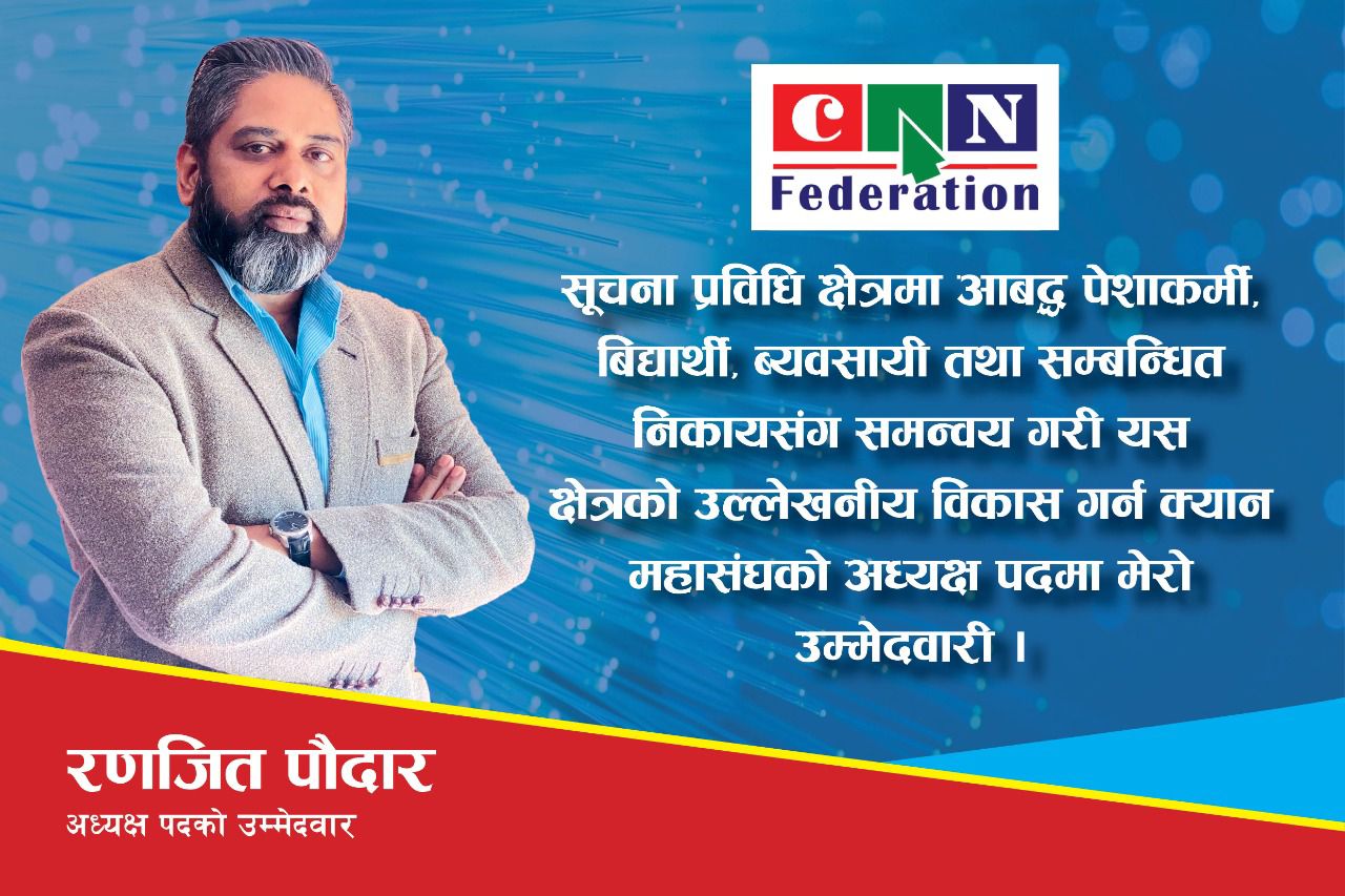 कम्प्युटर एशोसिएसन नेपाल महासंघ (क्यान महासंघ)को आगामी निर्वाचनमा अध्यक्ष्यका प्रत्याशिको रुपमा रणजित पौदारले उम्मेद्वारी घोषणा गरेका छन्।