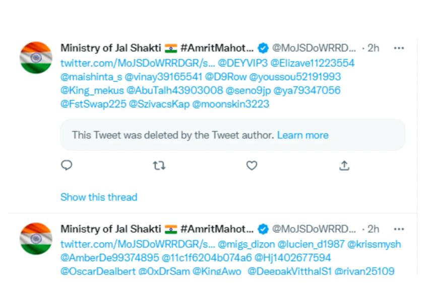 भारतको केन्द्र सरकारको जल शक्ति मन्त्रालयको ट्विटर एकाउन्ट ह्याक भएको छ। अमर उजालाका अनुसार बिहीबार बिहान मन्त्रालयको ट्विटर एकाउन्ट ह्याक भएको छ।