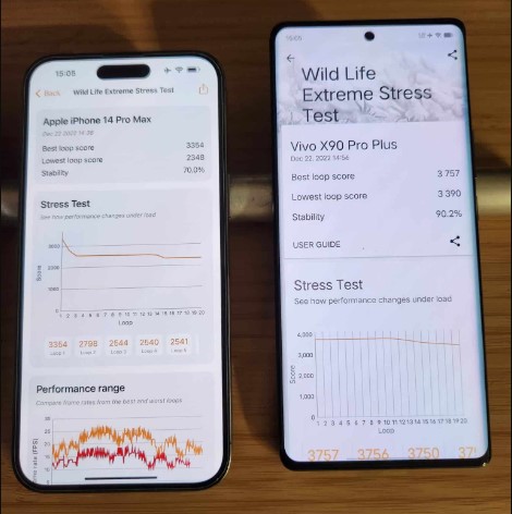 बेस्ट लूप तर्फको तुलनामा एक्स ९० प्रो प्लसले ३७५७ अंक प्राप्त गरेको थियो भने एप्पलको आईफोनले ३३५४ अंक प्राप्त गरेको बताइएको छ। उक्त तुलनामा एप्पलको लागि निराशाजनक पक्ष भनेको आईफोनको बेस्ट लूप एक्स ९० प्रो प्लसको लोएस्ट लूप (३३९० अंक) भन्दा पनि कम रहेको भनी उल्लेख गरिएको छ। साथै स्न्यापड्रागन ८ जेन २ को स्ट्याबिलिटी धेरै राम्रो भएको जुन आश्चार्यजनक विवरण नभएको भनि बताइएको छ।