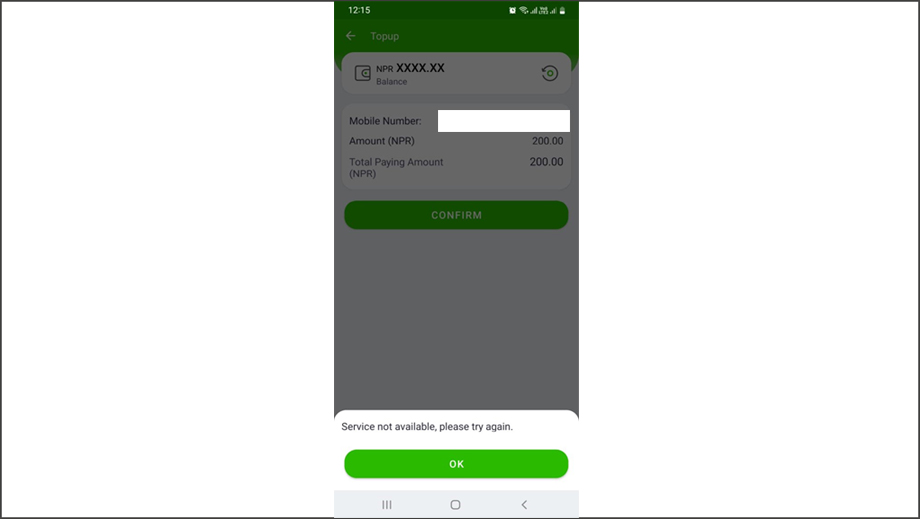 तर वालेट खोल्दा ग्राहकहरुलाई सेवा उपलब्ध नै नभएको र पुन प्रयास गर्न भनिएको सन्देश आएको छ। यस्तो संदेशसहितको स्क्रीनसट हामीलाई एक ग्राहकले पठाएका छन्।