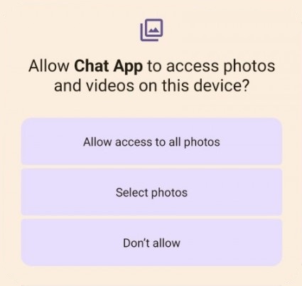 एन्ड्रोइड १४ डेभलपर प्रिभ्यूको बिल्ट–इन सपोर्टले एपहरूलाई केवल तस्बिर र भिडियोहरू सेलेक्ट गर्न एक्सेस दिने, वा ती सबैमा एक्सेस गर्न दिने, वा नो एक्सेस एट अलको अनुमति प्रदान गर्ने उल्लेख गरिएको छ।