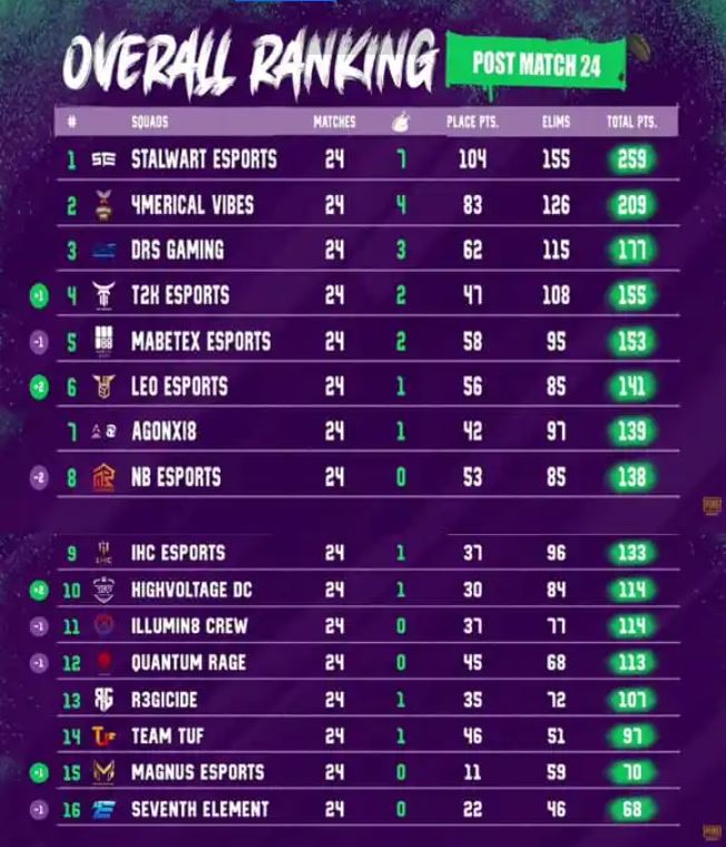 स्टवार्टले चार दिनसम्म चलेको प्रतियोगिताको कुल २४ खेलमा २५९ अंक प्राप्त गर्दै आफूलाई पुन एक पटक साउथ एशिया क्षेत्रको अब्बल पब्जी टिमको रुपमा सिद्ध गरेको छ। प्रतियोगिता अवधि भर स्टलवार्टले ७ चिकन डिनर सहित १०४ प्लेसमेन्ट र १५५ इलिमेसन प्वान्ट प्राप्त गरेको छ। प्रतियोगिताको सुरुवाती दुई दिनमा मध्यम प्रदर्शन गरेको स्टवार्टले तेस्रो र चौथो दिन अद्वित्य प्रदर्शन गरेको थियो।