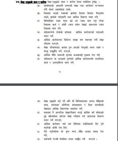 अझ विनियम ४४ मा लेखा प्रमुखको काम र कर्तव्य स्पष्ट लेखिएको छ।
