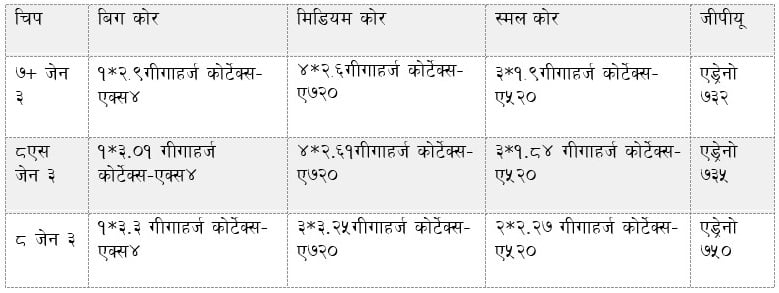 त्यसैगरी लीकहरुले अहिलेसम्ममा स्न्यापड्रागन ७+(प्लस) जेन ३ र स्न्यापड्रागन ८एस जेन ३ को बारेमा सम्भावित स्पेसिफिकेशनहरूको बारेमा खुलासा गरेको उल्लेख छ।