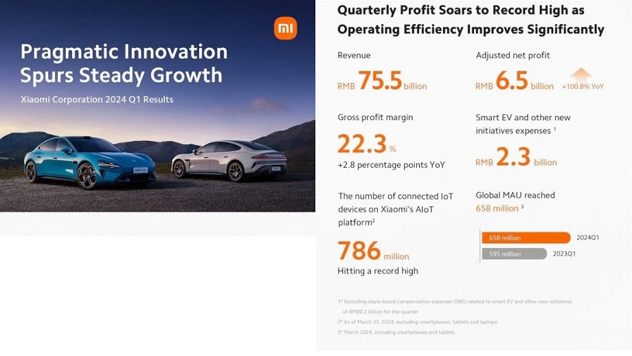 शाओमीको कूल नाफाको मार्जिन २२.३ प्रतिशत पुगेको र जुन २.८ प्रतिशत वार्षिक दरको वृद्धि भएको छ। शाओमीको सन् २०२४ को पहिलो त्रैमासिकमा भएको मुख्य व्यवसायहरूको नाफाको केन्द्रबिन्दु प्रभावशाली वित्तीय कार्यसम्पादन भएको जनाइएको छ।