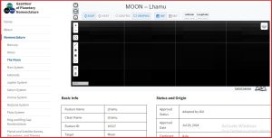 प्लानेटरी सिस्टम नोमन्क्लेचर अर्थात् ग्रह प्रणाली नामाकरणका लागि आईएयू अर्थात् (अन्तरराष्ट्रिय खगोल युनियन) को कार्यदलले चन्द्रमामा भएको एउटा विशेषताको नाम ल्हामु राख्न अनुमति दिएको हो। यो अनुमति गत जुलाई २९ तारिखका दिन दिइएको प्लानेटरीनेम्स नामक वेबसाइटले उल्लेख गरेको छ।