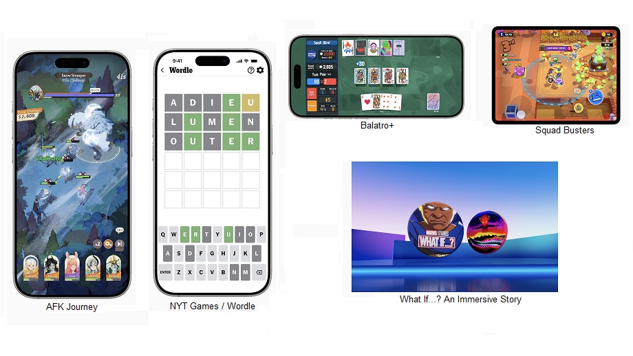 त्यसैगरी अन्तरक्रियात्मक स्टोरी (कथा) एप तिर बढी झुकाव भएको व्हाट इफ…? एन इमर्सिभ स्टोरी एप्पल भिजन प्रो एप अफ द इयर विजेता बन्न सफल भएको र यो एपले एप्पल भिजन प्रो प्रयोगकर्ताहरूलाई आफूलाई अनुकूल हात इशाराहरू र आँखा ट्र्याकिङहरू प्रयोग गरेर शत्रुहरूसँग लड्न र कास्ट स्पेलहरू प्रयोग गर्न अनुमति दिने बताइएको छ।