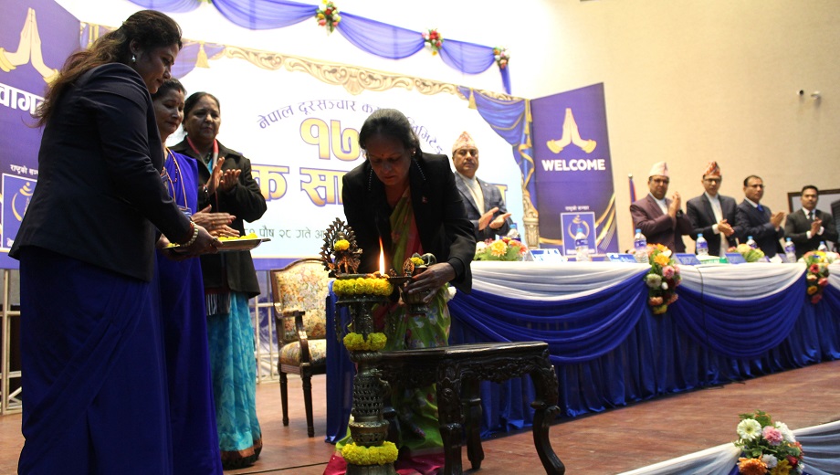 सो अवसरमा कम्पनी सञ्चालक समितिका अध्यक्ष एवं सञ्चार तथा सूचना प्रविधि मन्त्रालयका सचिव राधिका अर्यालले साधारणसभामा उपस्थित शेयरधनीहरुलाई स्वागत गर्दै कम्पनीको सत्रौँ वार्षिक प्रतिवेदन पेश गरेकी थिइन्।