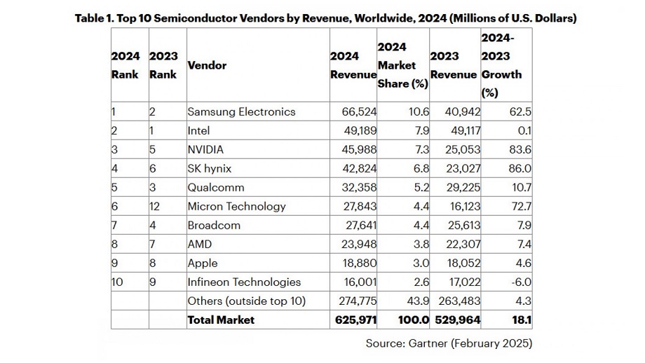 सन् २०२३ मा इन्टेलसँग पहिलो स्थान गुमाएको सामसङ सन् २०२४ मा विश्वको सबैभन्दा ठूलो सेमीकन्डक्टर निर्माताको रूपमा फर्केको छ।