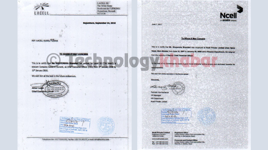 उता, एनसेलमा सम्पर्क गर्दा अध्यक्ष भण्डारीको उक्त कम्पनी सम्बद्ध अनुभव पत्र सही रहेको र त्यसमा भएका विवरणहरु समेत सत्य रहेको उच्च स्रोतले केहि समय अगाडि जानकारी दिएको थियो।