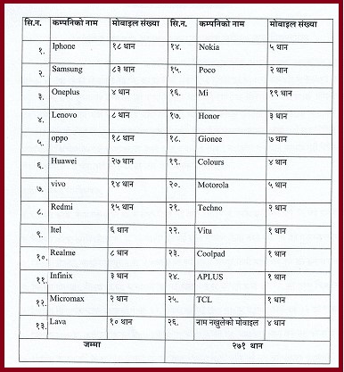 उक्त मोबाईल रिपेयरिङ सेन्टरमा खानतलासी गर्दा लुकाई छिपाई राखेको अवस्थामा विभिन्न कम्पनीको मोबाइल २७१ थान, ट्याब ९ थान र ल्यापटप १५ थान बरामद गरी रिपेयरिङ सेन्टर सञ्चालक सहित ७ जनालाई नियन्त्रणमा लिई थप अनुसन्धान भइरहेको प्रहरीले जानकारी दिएको छ।