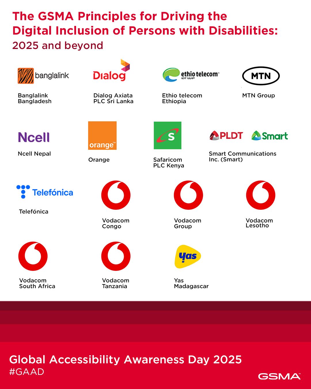 जीएसएमए विश्वभरका मोबाइल सेवा प्रदायक कम्पनीहरुको छाता संगठन हो। जीएसएमएका यी सिद्धान्तहरूले डिजिटल समावेशीकरण प्रवद्र्धन गर्न र मोबाइल सेवामा अपाङ्गता भएका व्यक्तिहरूको पहुँचको खाडल हटाउन विश्वभरका मोबाइल सेवा प्रदायकहरूलाई प्रेरणा र मार्गनिर्देशन प्रदान गर्दछ।