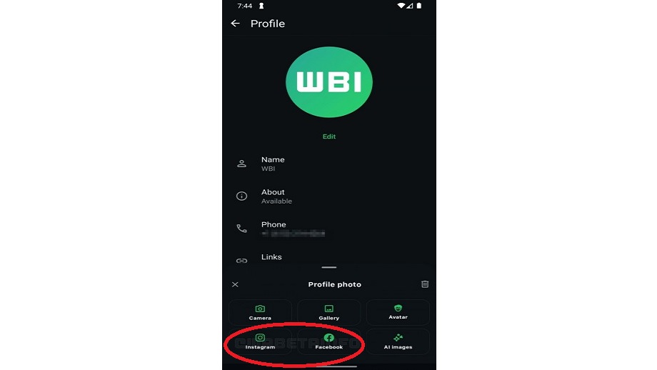 फेसबुक वा इन्स्टाग्राम चयन गर्नाले अब प्रयोगकर्ताहरूलाई व्हाट्सएपमा लिङ्क गरिएको फेसबुक/इन्स्टाग्राम खाताबाट प्रोफाइल फोटोहरू आयात गर्न अनुमति दिनेछ।