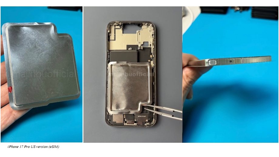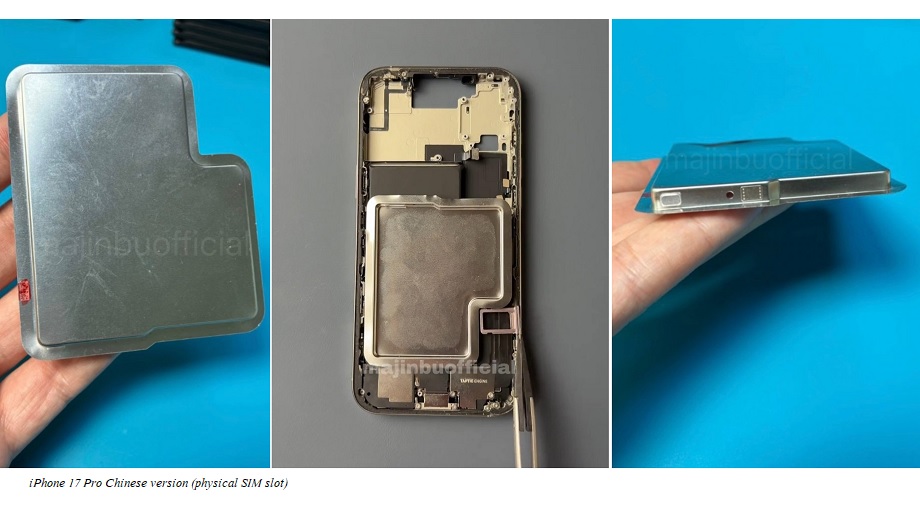 आईफोन १७ प्रोले आईफोन १६ प्रो जस्तै स्टील केसिङको साथ एल–आकारको डिजाइन प्रयोग गर्नेछ। तस्बिरहरूले अमेरिकी र चिनियाँ संस्करणहरूको लागि ब्याट्रीहरू बीचको विशिष्ट भिन्नताहरू पनि देखाउँछन्।
