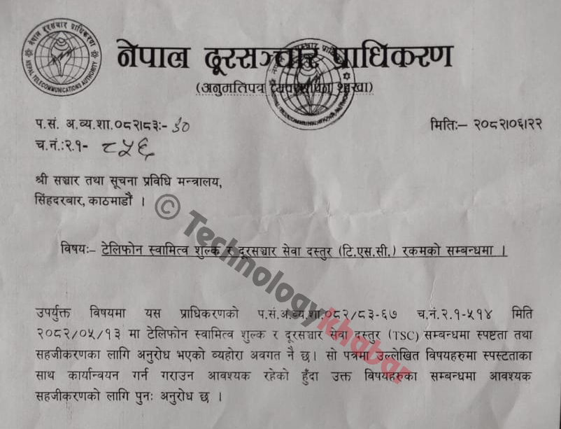 प्राधिकरणले २०८२ भदौ १३ गते पठाएको पत्रमा, आर्थिक ऐन २०८२ को दफा १४ र दूरसञ्चार नियमावली २०५४ को नियम १५ मा रहेका प्रावधानहरुबीच द्विविधा उत्पन्न भएको उल्लेख छ। जबकि यी दुवै बुँदामा कुनै द्विविधा देखिँदैन।