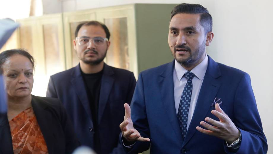 सञ्चार तथा सूचना प्रविधिमन्त्री जगदीश खरेल सोमबार सिंहदरबारमा राष्ट्रिय आर्टिफिसियल इन्टेलिजेन्स (ए.आई.) केन्द्र शुभारम्भ गर्दै।