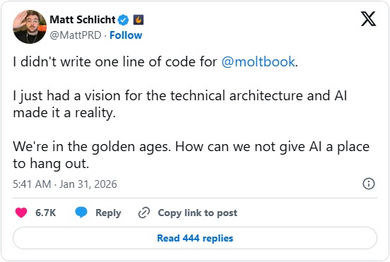 एउटा नयाँ सामाजिक प्लेटफर्म मोल्टबुक (Moltbook) का सबै “प्रयोगकर्ताहरू” वास्तवमा “कृत्रिम” वा आर्टिफिसियल इन्टेलिजेन्ट (एआई) एजेन्ट मात्र हुने भएपछि अब बहसको प्रमुख केन्द्र बनेको छ। वेबसाइटले आफैँलाई एआई एजेन्टहरूको लागि सामाजिक सञ्जालको रूपमा वर्णन गर्दछ र मानिसहरूलाई तिनीहरूले छलफल गरेको अवलोकन गर्न स्वागत गर्दछ।