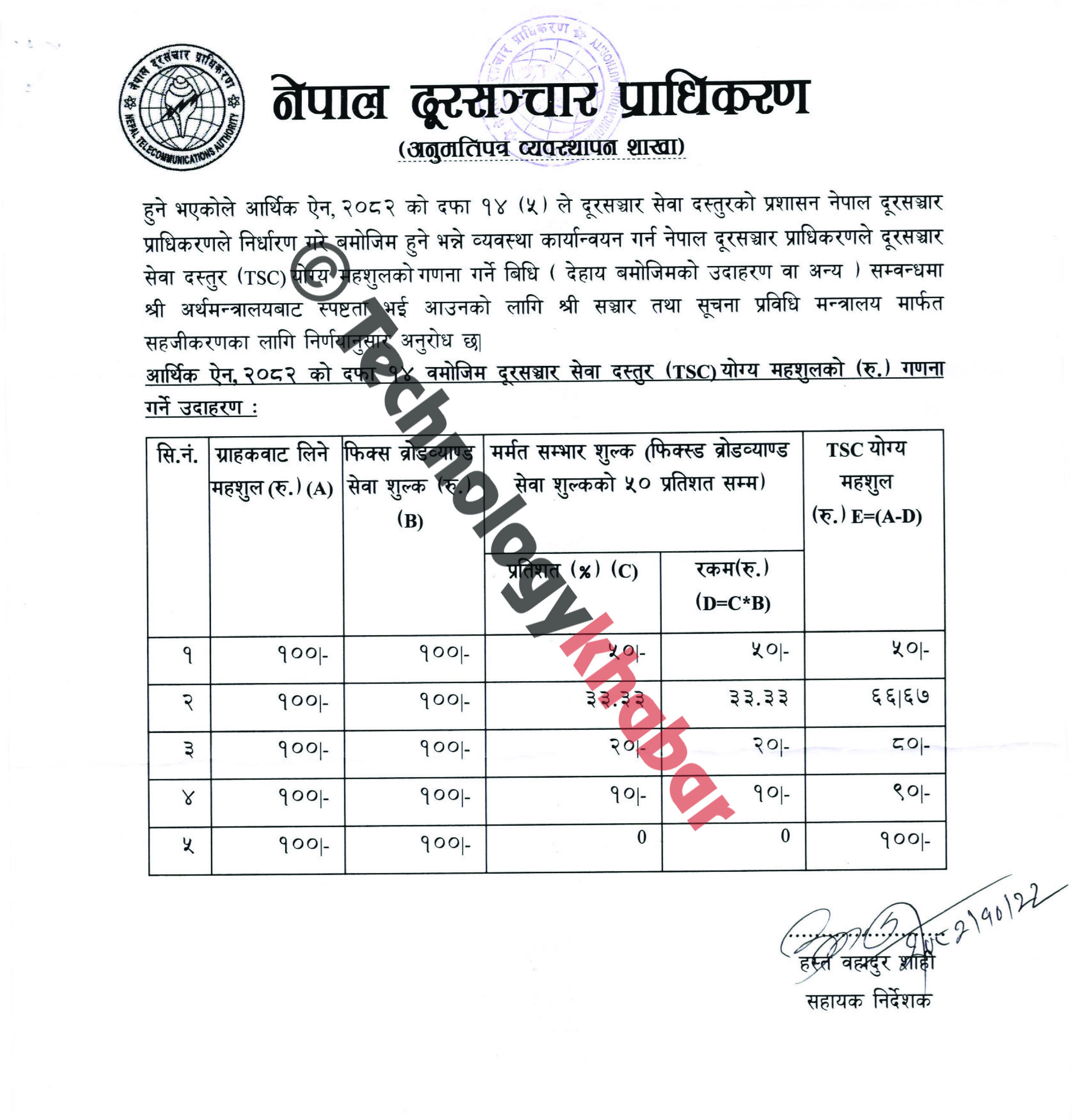 तर रोचक विषय के भने प्राधिकरणले “आर्थिक ऐन, २०८२ को दफा १४ बमोजिम” भन्ने दाबीसहित मन्त्रालयलाई दूरसञ्चार सेवा दस्तुर (TSC) योग्य महशुलको (रु.) गणना गर्ने उदाहरण दिएको देखिन्छ। तर ऐनमा यस्तो कुनैपनि उदाहरणहरु तोकिएको देखिँदैन्।