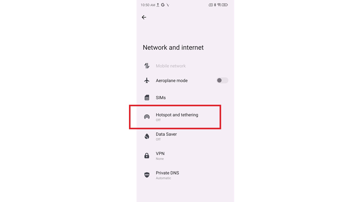 सेटिङ्ग्समा गएपछि, तपाईंले “नेटवर्क र इन्टरनेट” विकल्प देख्नुहुनेछ, जुन तपाईंले ट्याप गर्नुपर्नेछ। यो विकल्प विभिन्न स्मार्टफोन निर्माताहरूमा फरक-फरक स्थानहरूमा देखा पर्न सक्छ, र तपाईं हटस्पटमा जान सक्नुहुन्छ।